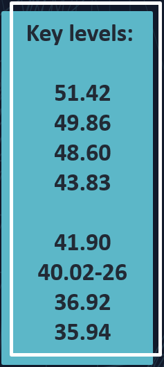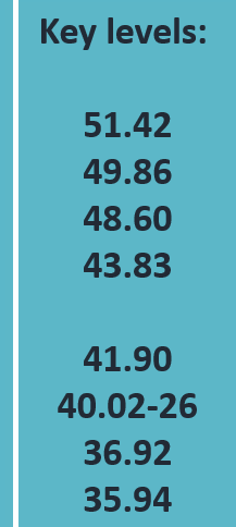 Summary of recent price action: Last week saw weakness back to 40.26 on Tuesday where buyers stepped in, then a stronger open on Wednesday.