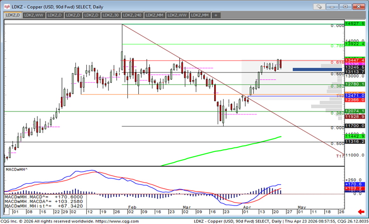 •Fibonacci says: 12780 and 13445 are the next upside targets. – 13445 hit and we’ve seen some selling this morning.