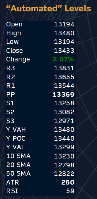•Bigger Picture thoughts and targets: 13445-13527 is a big area of resistance.