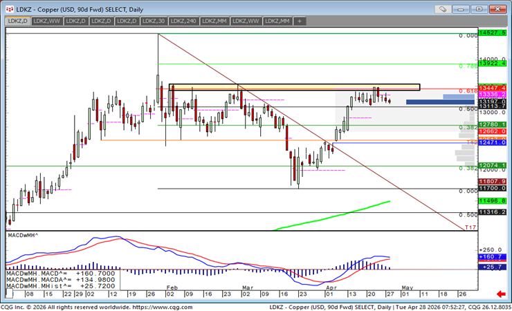 •Fibonacci says: 12780 and 13445 are the next upside targets. – 13445 hit and we’ve seen some selling.